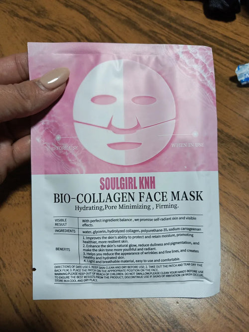 - Aplicación: Después de finalizar tu rutina de cuidado de la piel nocturna (limpieza y sérums), aplica la mascarilla de colágeno sobre la piel.